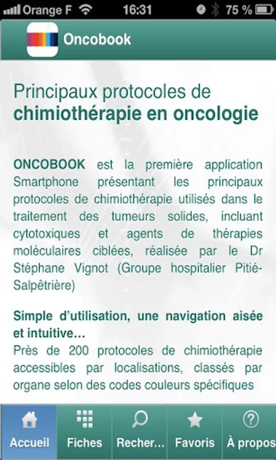 This first application, by Dr. Stéphane Vignot (Groupe Hospitalier Pitié-Salpêtrière), includes the main chemotherapy regimens used in the treatment of solid tumors, including cytotoxic agents and molecular targeted therapies.