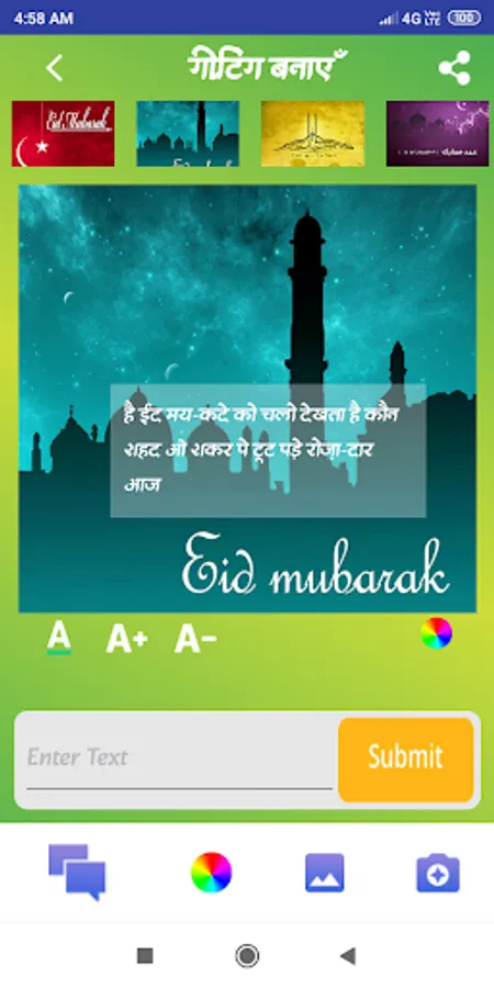 Right after Ramadan comes Eid al-Adha, the holiest holiday. Use Eid Mubarak Wishes & Greetings and send Eid al-Adha best wishes to everyone you know on this important and holy festival! Pick customized greeting cards free and send holy blessings. Choose the font color and style to match the card design, write your greetings and wishes and make somebody happy! Send your blessings to all your faraway relatives and friends. Let them know that you think about them!