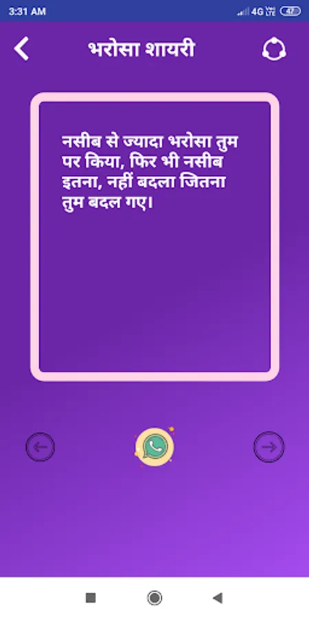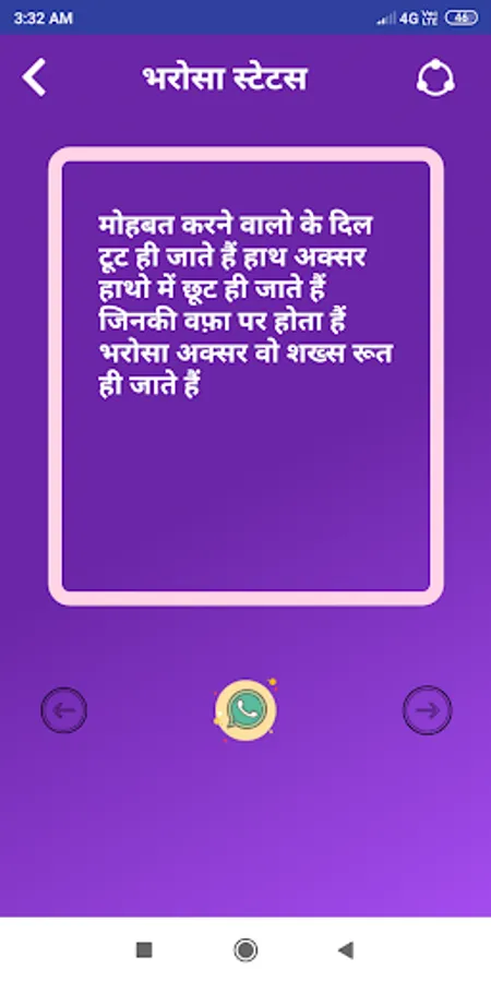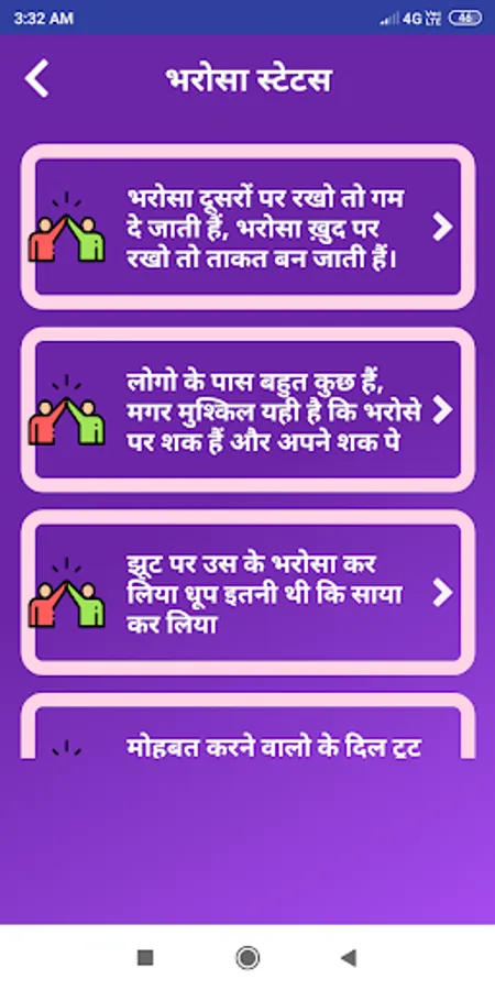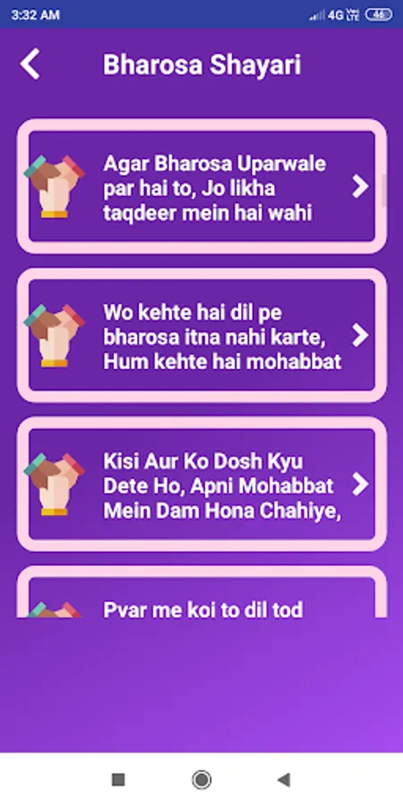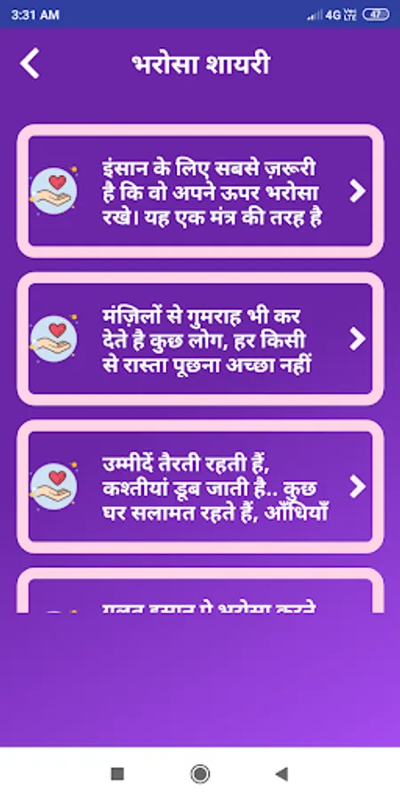 One of the best Shayari App of All time. This app contains largest collection of Bharosa Shayari, Hindi Shayari and Bharosa Status.