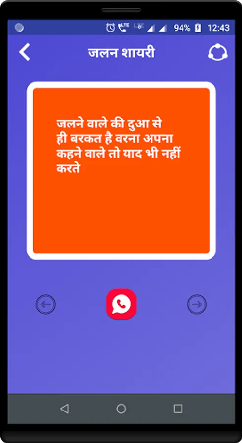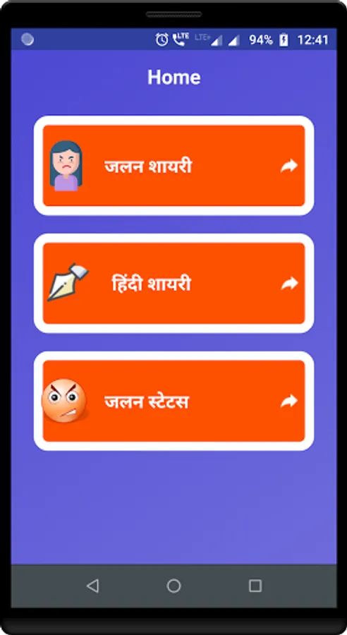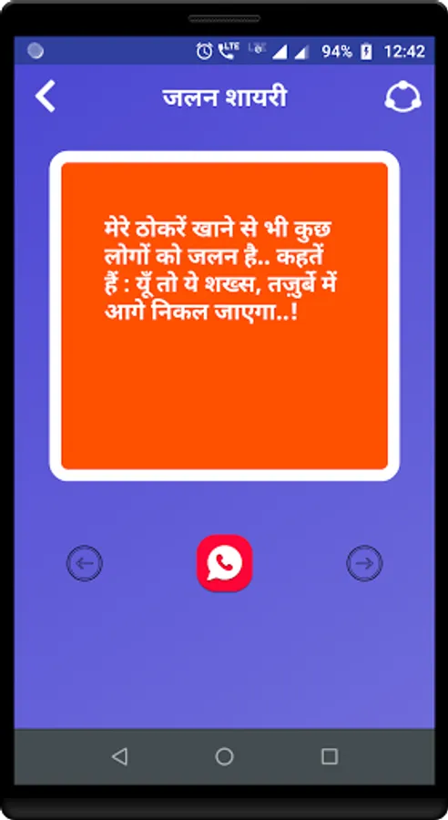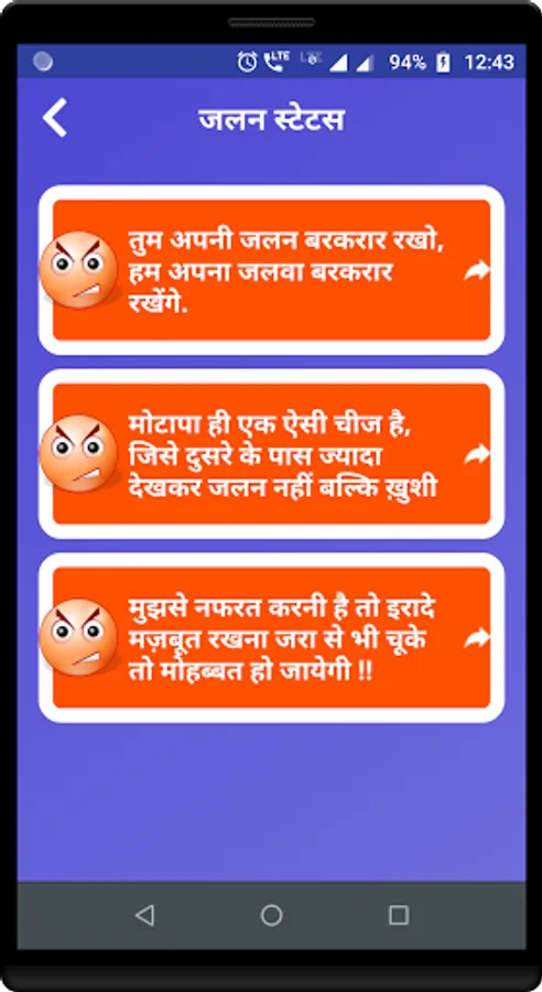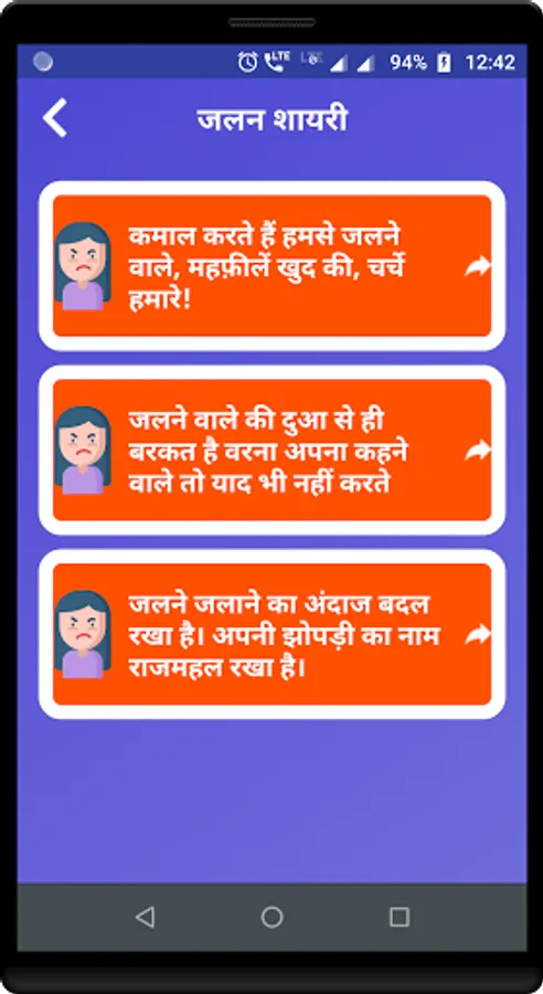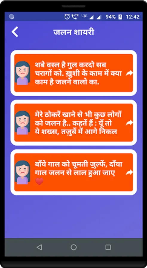 Under this app you can find well categorized collection of Jalan Shayari, Jealousy Shayari and Jealousy messages which you can share with your friends.