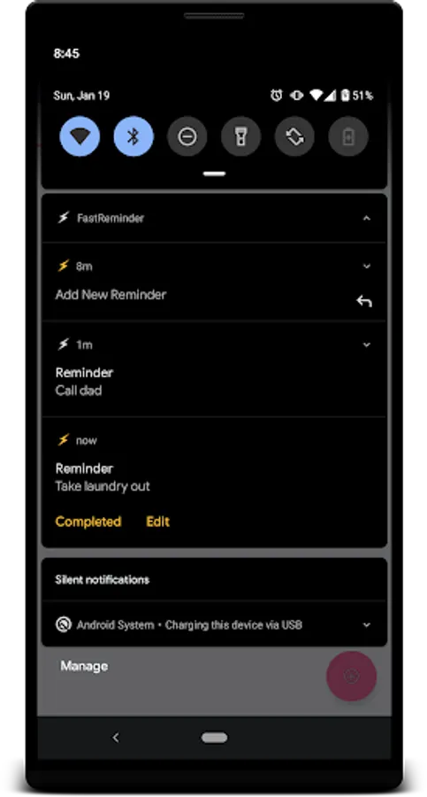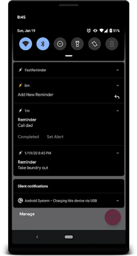 Create quick reminders directly from your notification bar without ever leaving the application you're currently using!