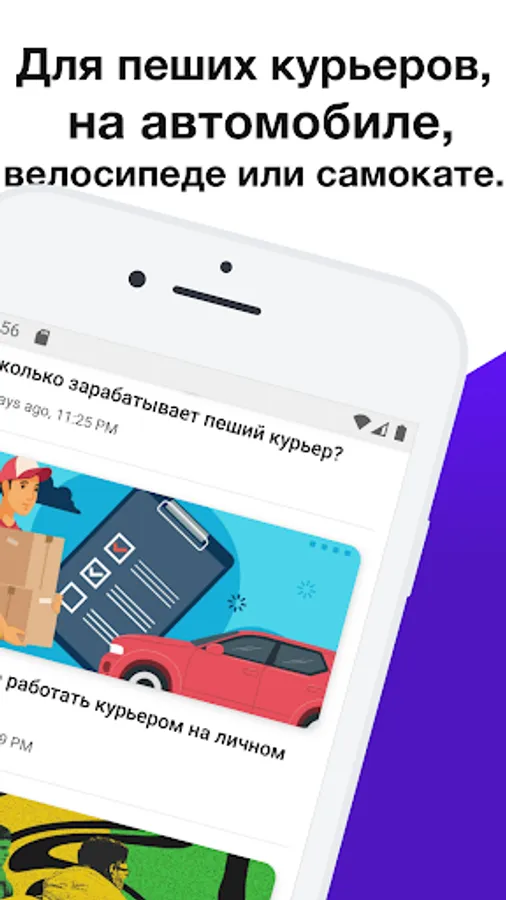 Our application will help you find a part-time job for foot, car, truck, bicycle or scooter couriers.