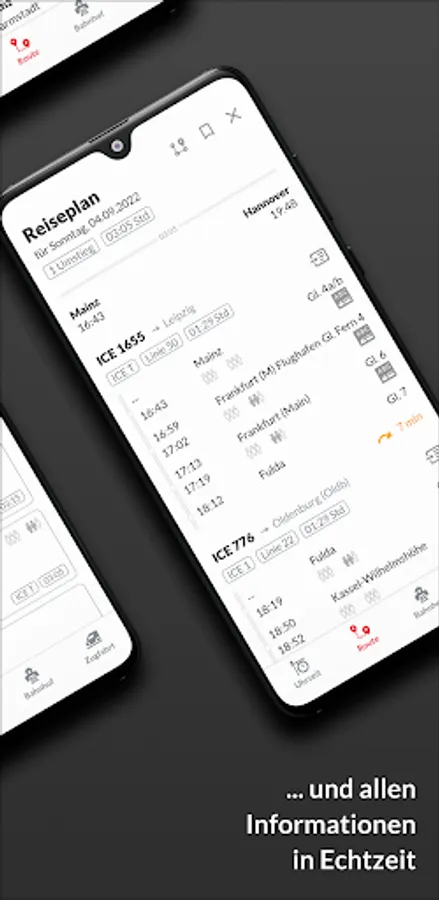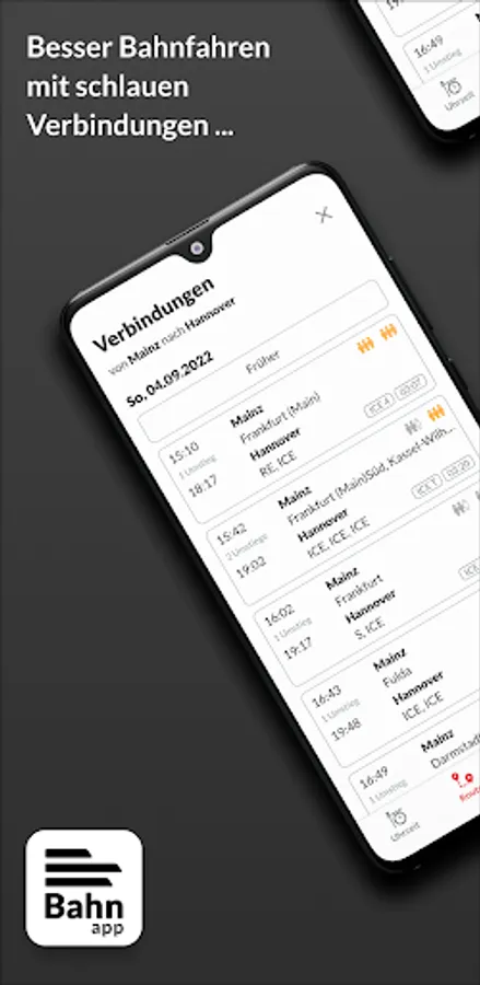 The departure boards show you which trains are leaving the station next. Whether ICE, IC, RE, RB or S-Bahn, you have a good view of everything. Local transport is also included. And if you allow the app to determine your location, it will also show you the train stations that are in your immediate vicinity.