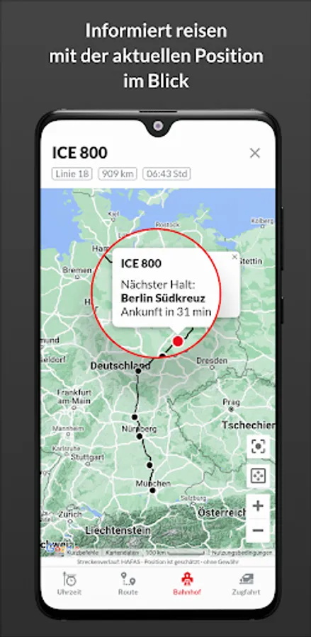 The app also shows you a map for every connection and every train journey. You can see the route, all stations and also the approximate location of the train once it is on the journey.
