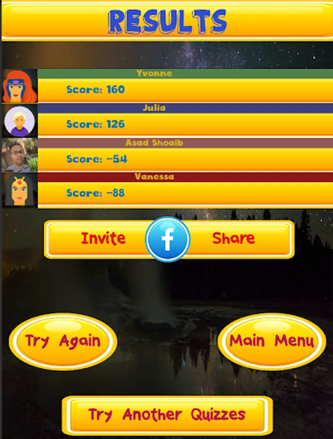 * New improved app user interface, now users can see their facebook pictures along with score while competing with other users.