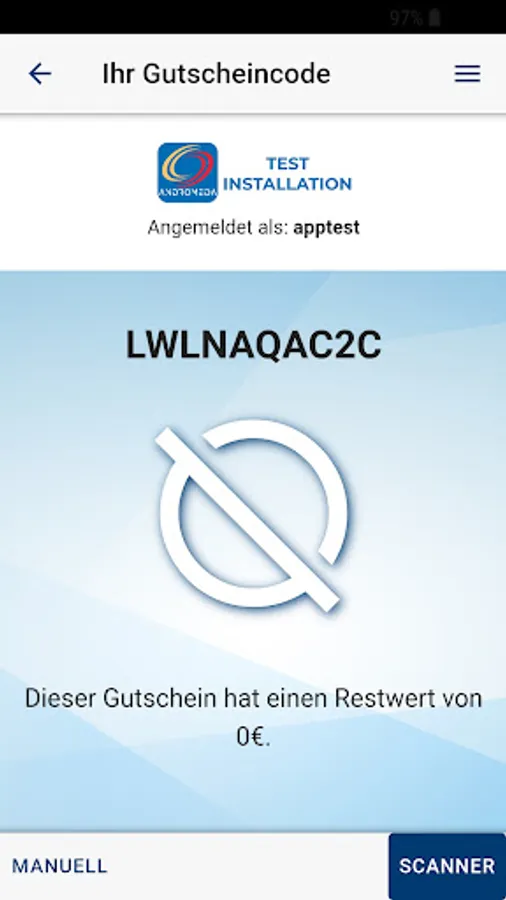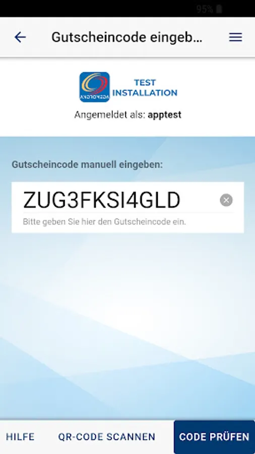 Redemption is possible by scanning the voucher QR code or by entering the code manually.