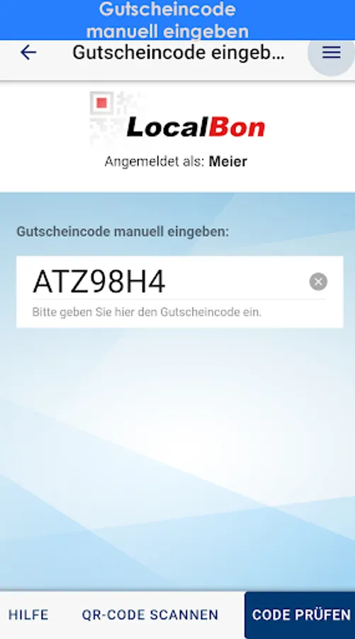 Redemption is possible by scanning the voucher QR code or by entering the code manually.