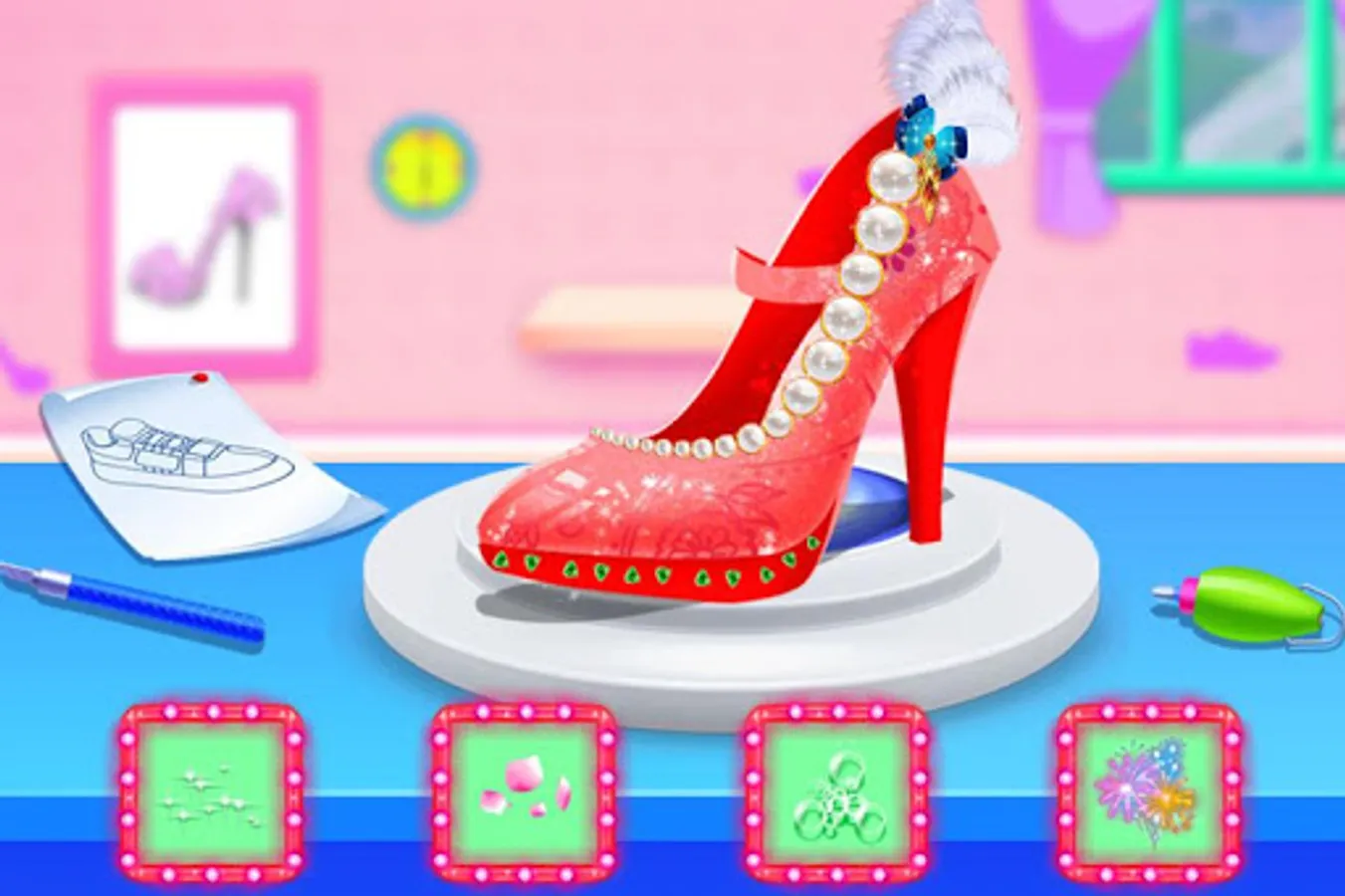5. Decorate the high heeled shoes with decorations