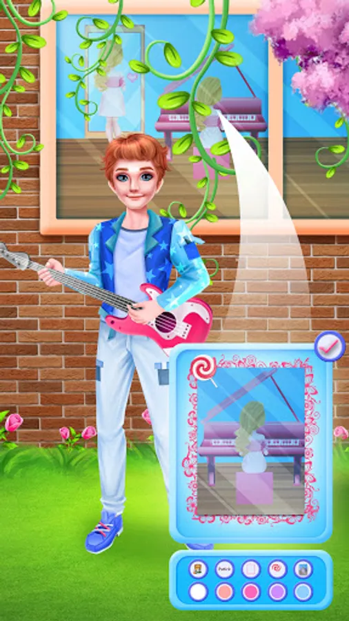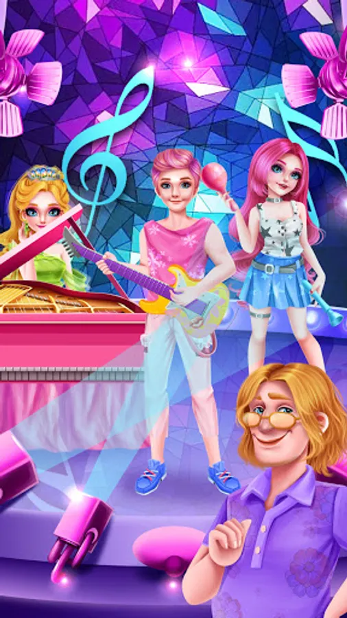 Hello everyone, I am Patrick. As you can see, guitar is my strong suit. GTV is now selecting new band and the winner has the opportunity to perform. I’m ready for that. But the problem is that I do not have the right company to compete with. Today I will interview some musicians for the job. Let’s check it out! However, there is no one suitable partner. How should I do! The tryout is only one day away, none of the right partners showed up! What's that music?It's so beautiful. I'd like to see who is playing the piano. Who is she?I have to ask her name. Oh. she's gone. I need to find her as soon as possible. Patrick made one piece of poster design. Naya and Diana saw it. Diana found that the girl on the poster is just she. She practiced in the piano room yesterday.
