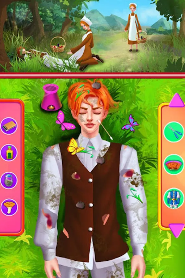 1. The prince is already unconscious, and many wounds are bleeding. Lily is ready to treat the prince, and she has prepared some food and clean clothes for the prince. Girls, let us start helping Lily and the prince.