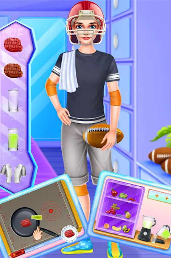 2. Eat some steaks and juices to supplement my energy before the game.After eating, I have to change into the uniform of the game.For the victory of this game, and let Anna see my handsomeness during the game, I must prepare all the items very seriously.