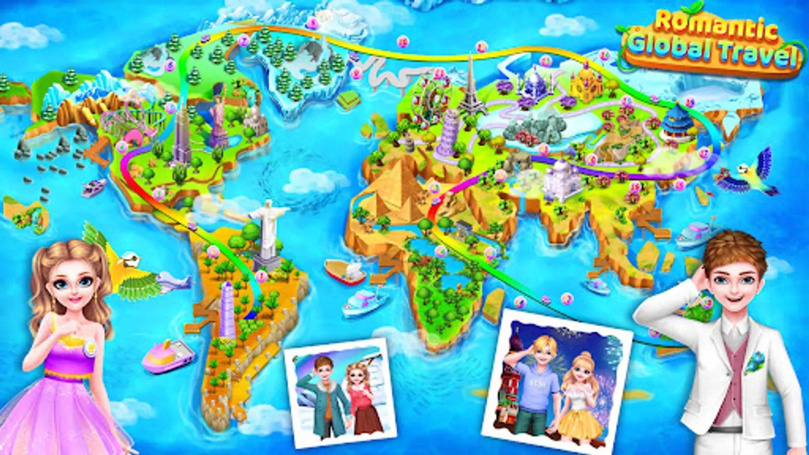Do you like traveling? Have you ever traveled around the world? If you also want to expand your horizon and see the sight around the world, then follow our footsteps and start a happy journey come to join us. We will take you to have a romantic global traveling with the happy couple together in our brand new game. Choose your favorite girl and boy characters. They will fly to Brazil to attend the Carnival and enjoy the Ecuador’s mysterious rainforest or take you to see other countries’ famous tourist attraction and take photos and upload to social media to share what they saw. Before they fly to each country, try your best to make up for the girl to let her look attractive. Select the suitable outfits and fashionable hairstyles to make the girl and boy’s styles fit the features of the local scenic spots. Don’t forget to take photos in every beautiful scenery to share with us. Wish you have a nice romantic traveling memory.