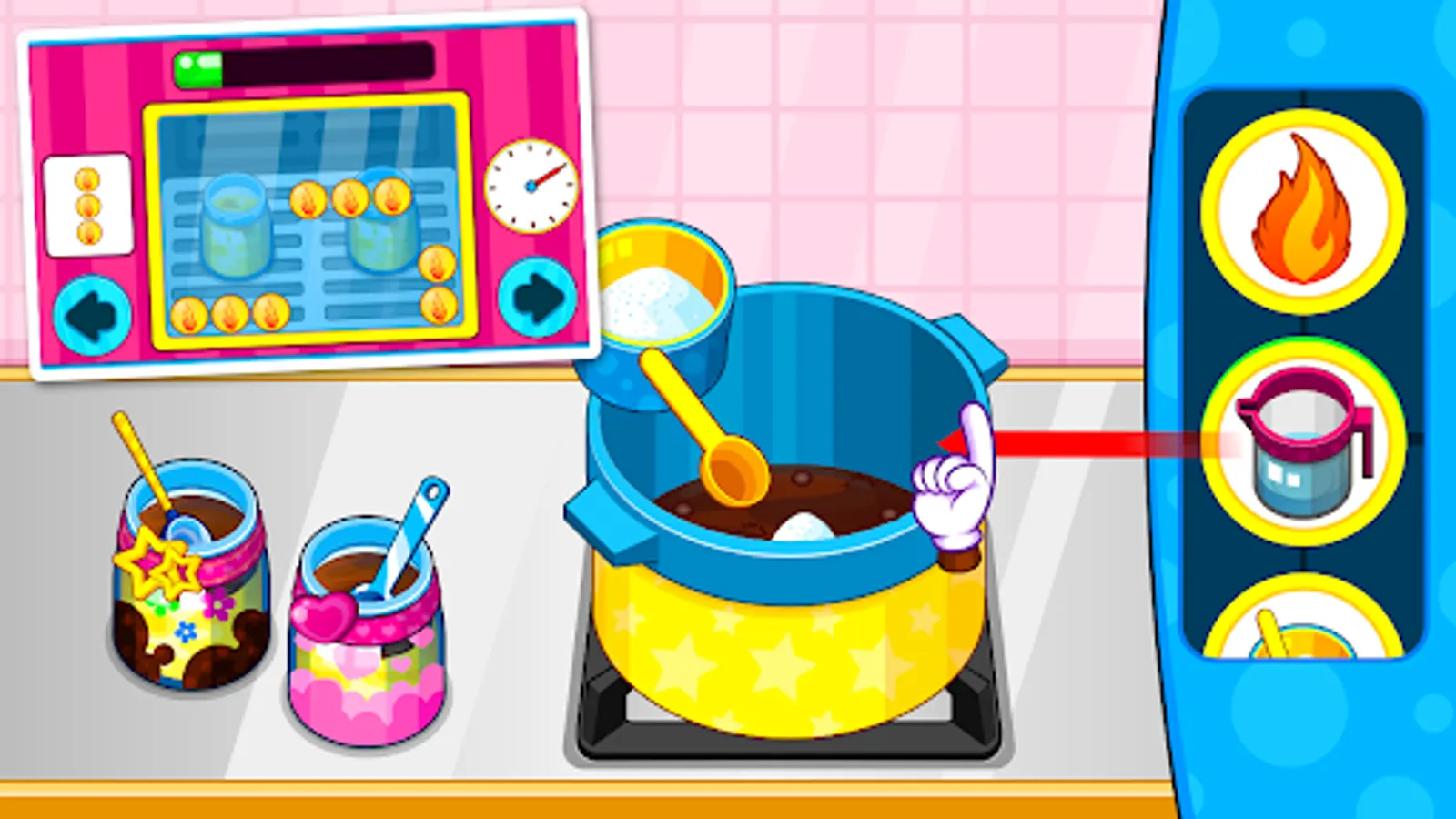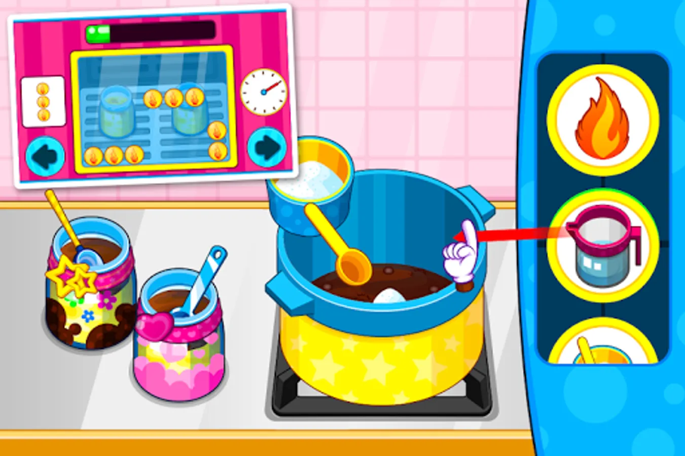 Now, lots of girls like eating sweet food like ice cream, sweet cake and milky tea. Sweets can make us have a nice mood. So Today, in our brand new game you will have the opportunity to learn the cooking menus of delicious sweets food. We will show you the cooking procedures to cook one piece of sweet ice cream or yummy cake. Follow our instructions to cook step by step. Use the cooking tools to prepare the raw materials and heat it. Decorate the sweets food and show us your excellent cooking skills. Have fun.