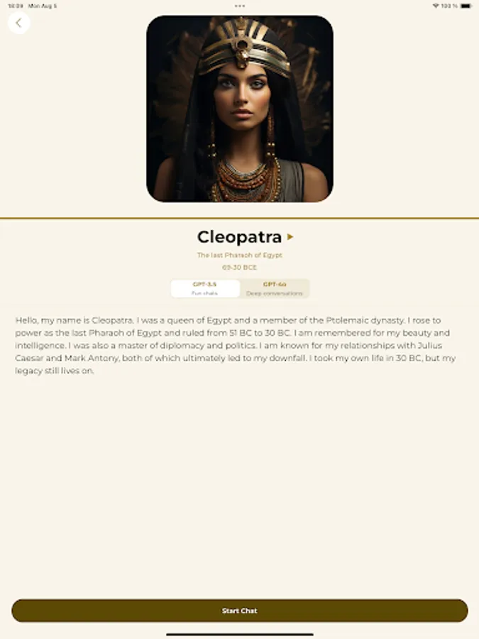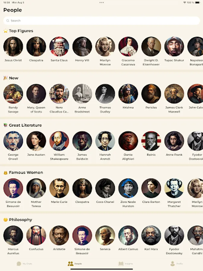 How it works: The app uses state-of-the-art (GPT-4) AI technology to bring these figures to life and make the conversations feel authentic. Each conversation is completely unique. Don't trust everything the AI generates. The facts should be validated.