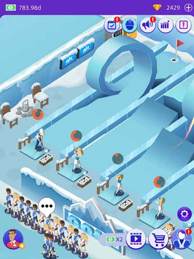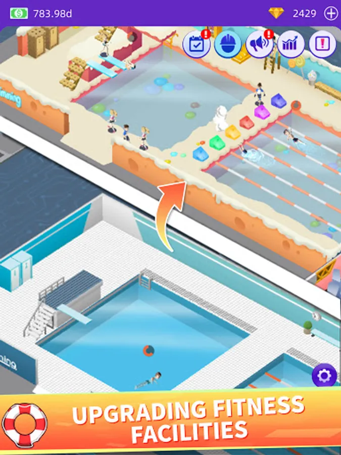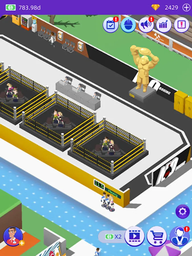 Invest wisely with different growth strategy. Allocate your money in turnstiles,staff management and attract elite sportspeople to make your gym more famous.
