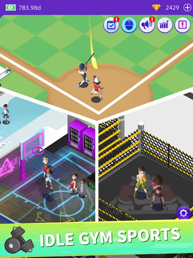 Build and manage your first dream gym. Expand and improve the Archery Hall, Basketball Hall, Boxing Ring, Football Field and so on.