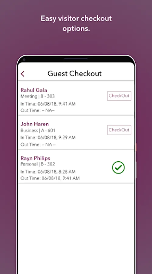 - Check-in your daily visitors on a single click with Frequent Visitors Service.