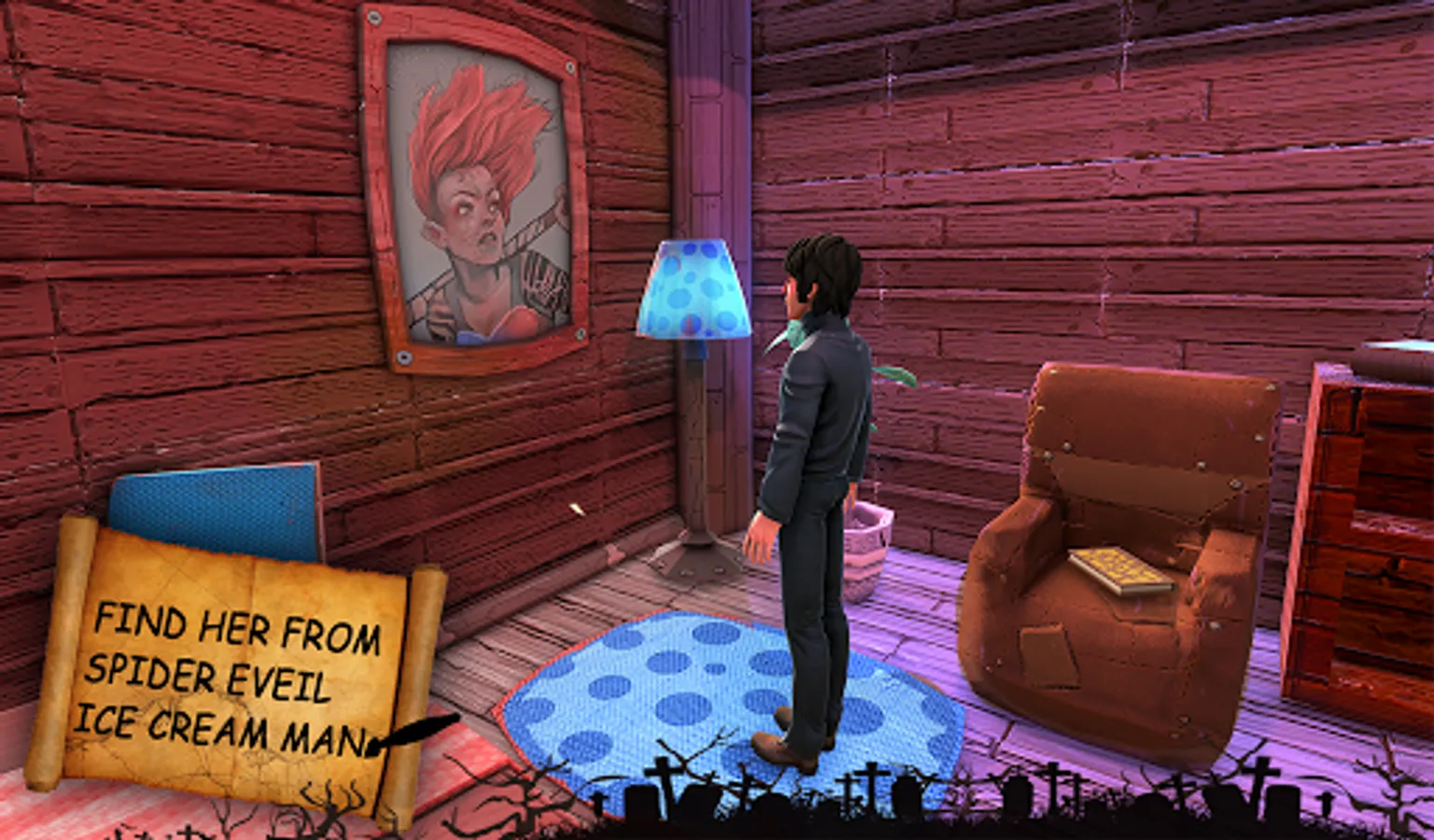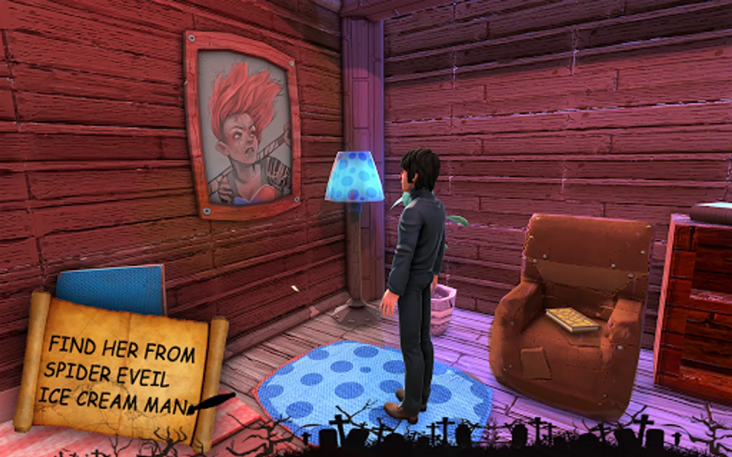 The horror ice cream seller has also kidnaped some children from the town in his ice cream van of the ice cream truck game. Your ice cream 3 missions also include saving them. Granny has frozen them with her superpowers, somewhere in the spider scary haunted house of the horror game. To complete your haunted house game missions and escape an awful house, you need some weapons and an ice cream truck. When the horror ice cream seller goes for office, you can complete your horror escape mission of the Ice-cream scary neighbor game easily. You can find the ice cream products and Childs in a small dark room of the ghost horror house game. Escape from the survival house in this scary house game, when you have successfully collected the products and spooky mug. But the granny house escape is not much easier as you think. The Spider scary insane grandpa will chase you in this spider game 3d. You will experience a real horror house escape adventure with this horror adventure game.