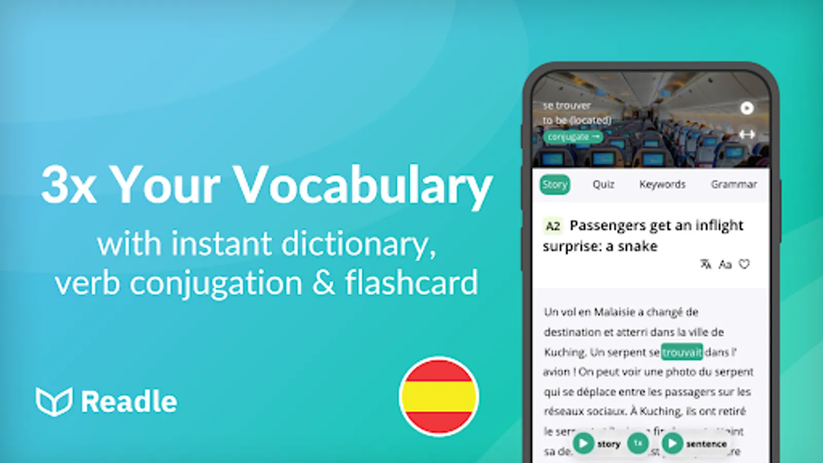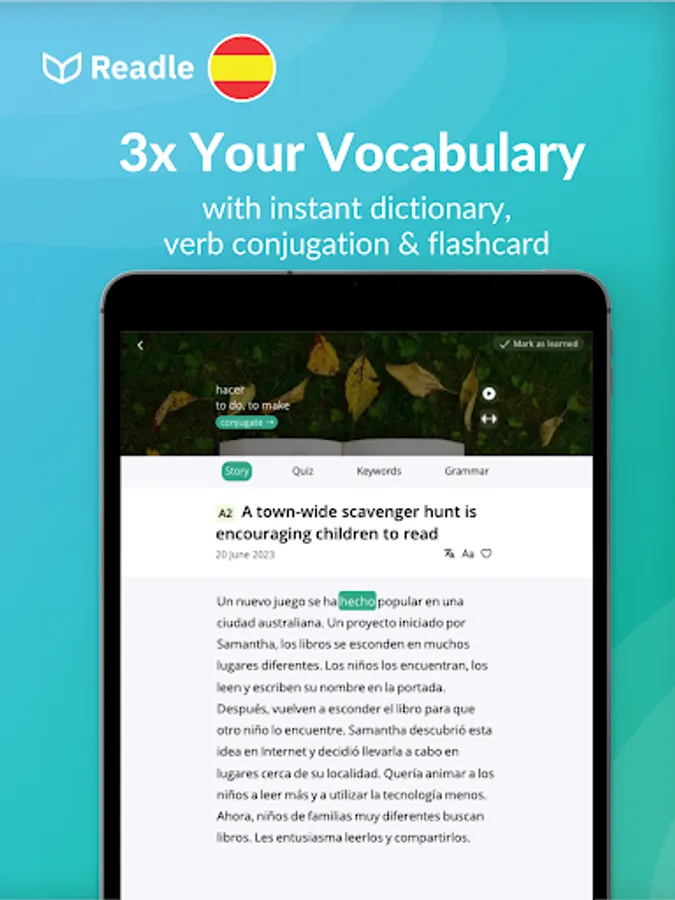 Readle is a language learning app with real-world news & stories. It is the world's first CEFR-graded reader to help you learn Spanish. Easily read & listen to news & stories anytime, anywhere – Take 10 minutes daily to learn Spanish.