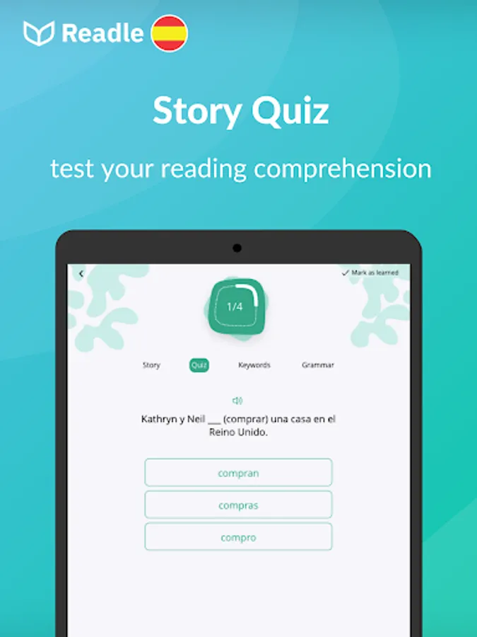 Readle is the best companion for your language learning education & upcoming language learning tests to get ahead. Download Readle and start to learn Spanish!