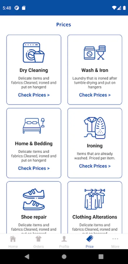 - Dry cleaning, Shirts services, Laundry services, Duvet & Bed linen, Leather & Suede, Wedding Services, Restaurant Laundry services, Specialist items, Hotel bedding services, household services, personal items & Baby items.