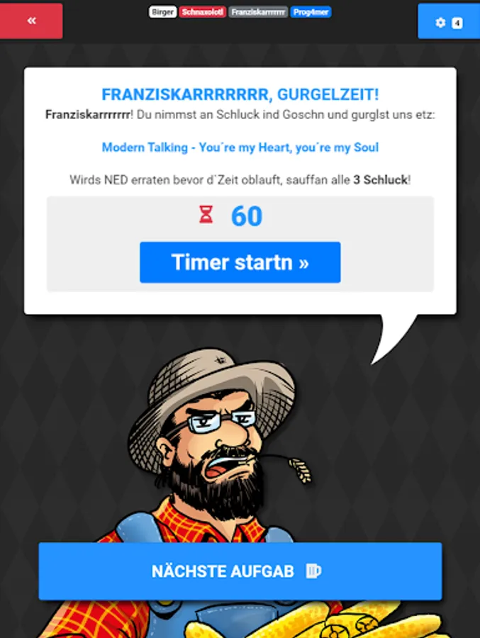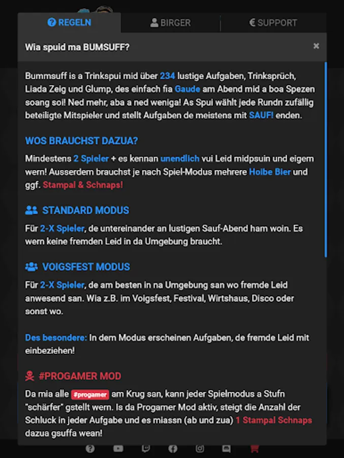 Bumsuff is a drinking game with varied and innovative tasks. Funny tasks consisting of quiz questions, pantomime, gargle guessing games, calls with stupid terms, drawing quizzes and tasks in which you definitely have to be active yourself! And in between you clink glasses and sound a toast together!