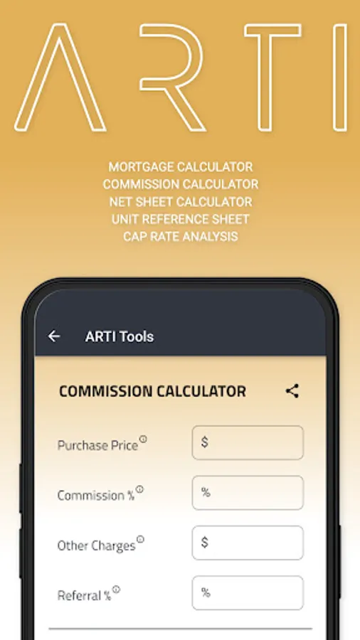 Be more efficient in your real estate business with the very best tools from ARTI®! Made for real estate professionals but available to anyone, you can calculate how much you will make on the sale of your home, calculate mortgages, commissions, cap rates, and even easily share with your clients with ease. No logins accepted or required just free, the ARTI® way.
