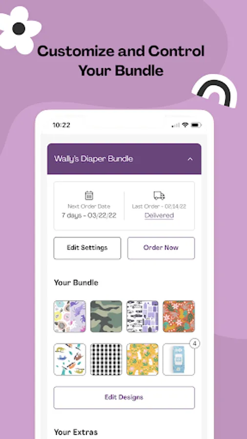 Use the Hello Bello app to manage your bundle, customize diaper designs and extra products, and reschedule or track shipped orders!