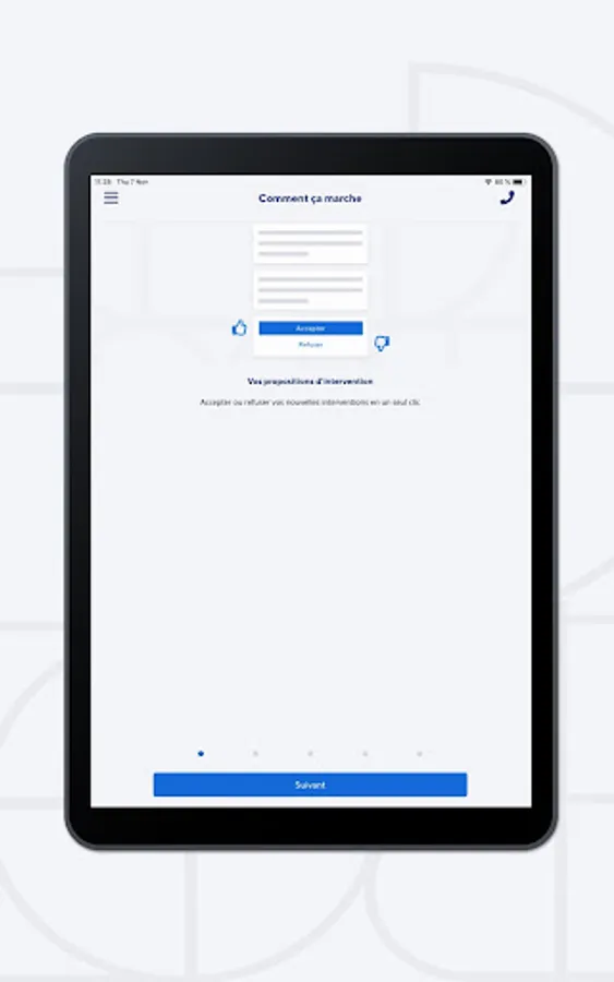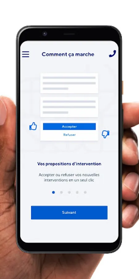 2) You receive the interventions according to your location and your skills. All information is indicated before the acceptance of the intervention: date, time, place, nature of the intervention, remuneration. You are free to accept or refuse these interventions according to your schedule.
