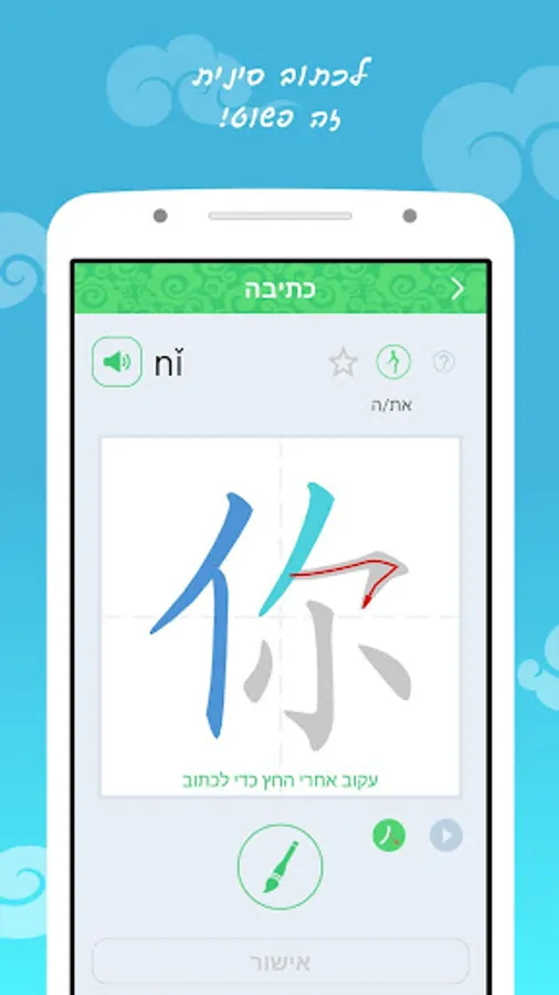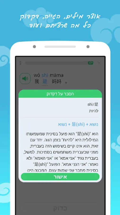 Also designed for those who never learned Chinese. At the beginning of the app, an entire chapter on Chinese transliteration and pronunciation is specially adapted for Hebrew speakers.