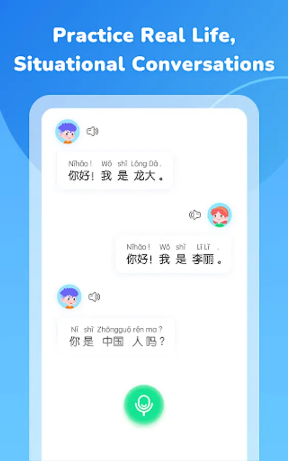 ◉ Speech recognition corrects your pronunciation and makes speaking Chinese a breeze.