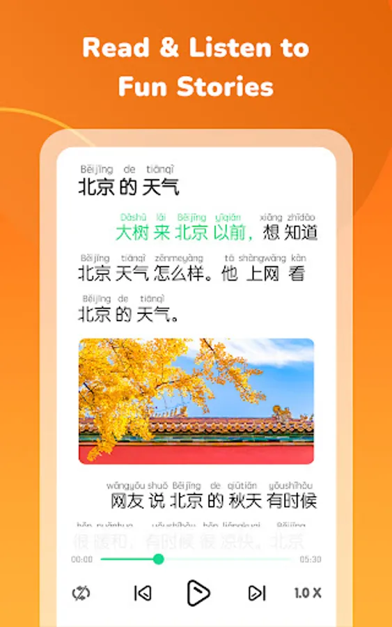 Designed in a fun and highly effective manner, HelloChinese helps you rapidly learn Mandarin Chinese from scratch to a conversational level. With HelloChinese, learners can "learn the Chinese language, explore Chinese culture" – you will not only learn Mandarin Chinese but also enjoy the process of delving into the culture intertwined with the language.