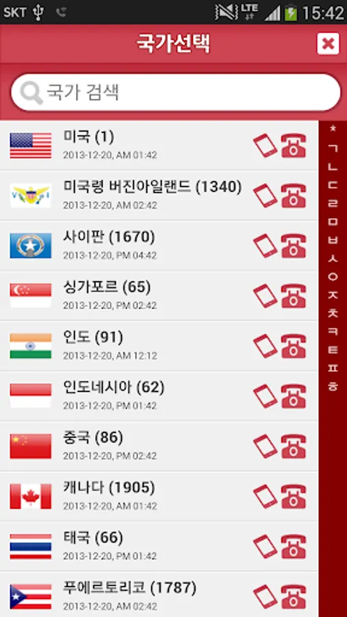 2. 按下 选择 国家 按钮 , 选择 想要 拨打 的 国家。