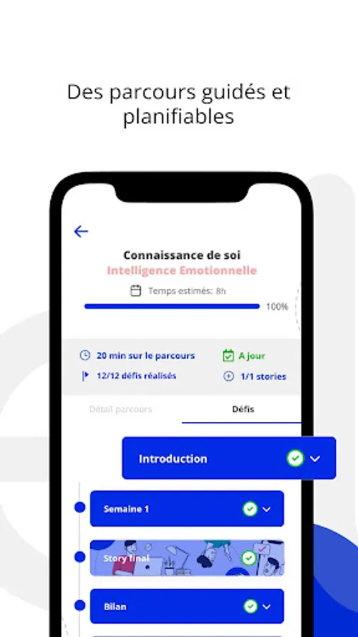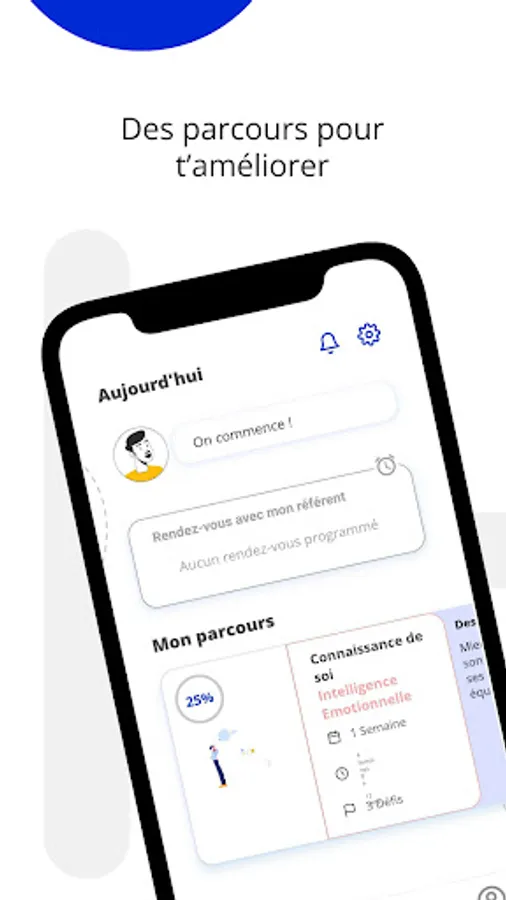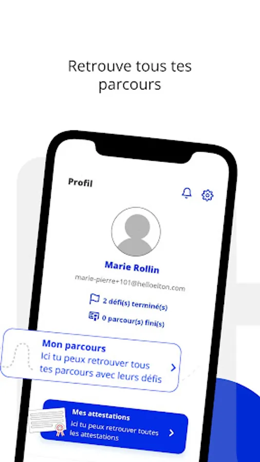 The Mayo by Hello Elton app is a guide to progress. After an introductory diagnosis, each user is offered operational challenges, to be carried out in a work situation. He is guided and notified to acquire skills related to his profession. He will thus put into practice, test and anchor routines over a long period of time.