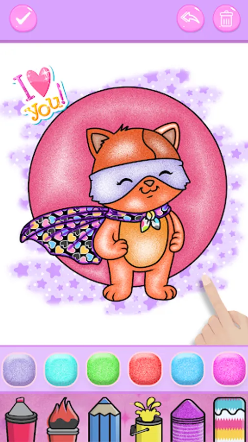 - coloring with amazing tools like pencils, brush, animation glitter,glitter and pattern!