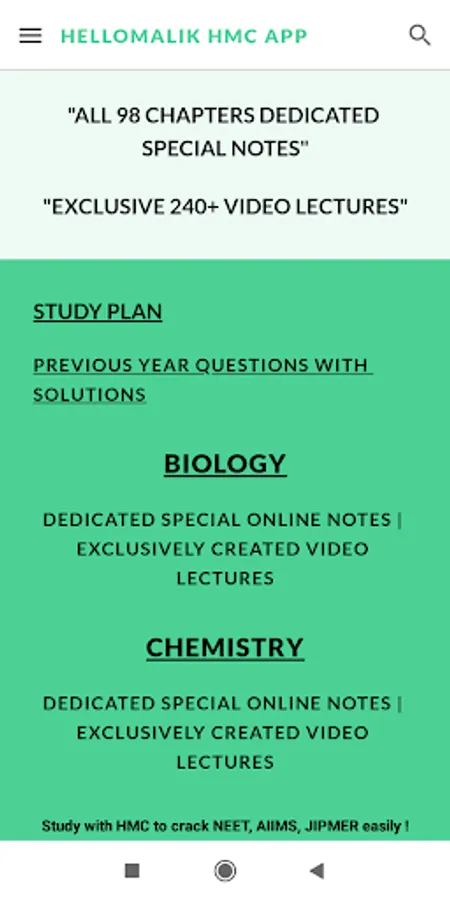 HMC NEET APP is the best online NEET course app. Specially prepared by Top professors of Zoology, Botany, Chemistry, Physics.