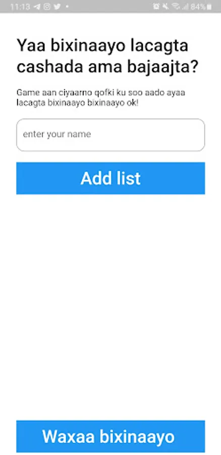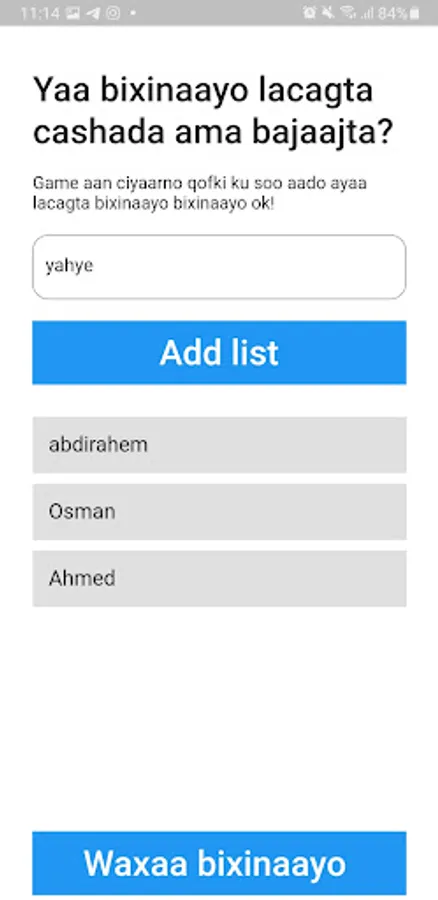 Tap the "paybill" button to have the app randomly choose one person from your list.
