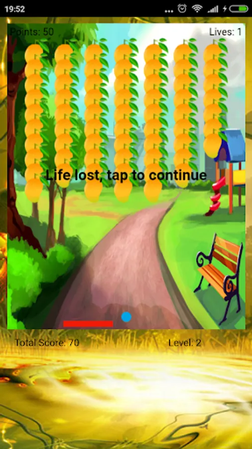 * If the ball drops on the ground three times and your lives is finished, you will loose the game as well as the score of current level.