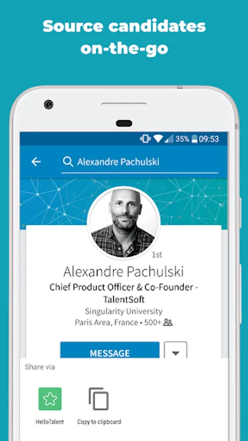The Hello Talent mobile app helps recruiters source talents anywhere, anytime.