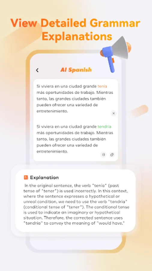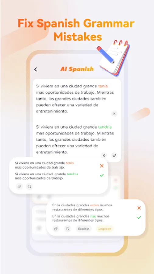AI Spanish will give corresponding explanations to help you understand grammar rules and causes of common Spanish grammar mistakes. With the help of AI Spanish, you can deepen your understanding of Spanish grammar.