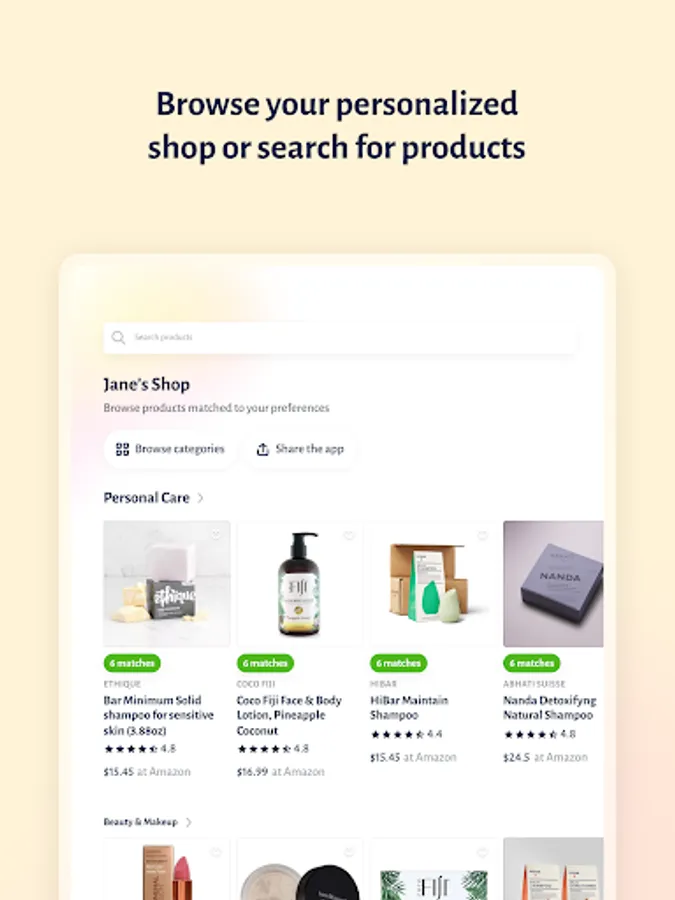 Our departments include Personal Care, Beauty & Makeup, Skincare, Household, & Baby Care, with Food currently in the works! For every product scored, Tera will recommend a list of better alternatives tailored to your personal shopping profile, which you can purchase at major retailers like Amazon, Sephora, & Grove Collaborative, or directly from the brand.