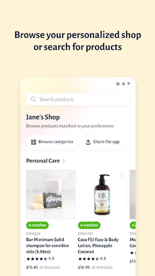 In the app, you’ll be able to set your Shopping Preferences to create a personalized marketplace that’s unique to your needs, values, & lifestyle.