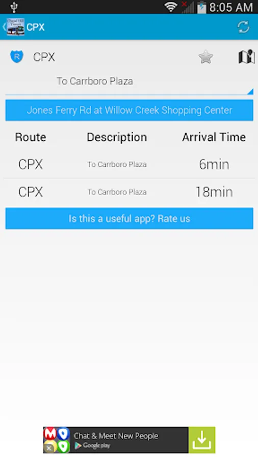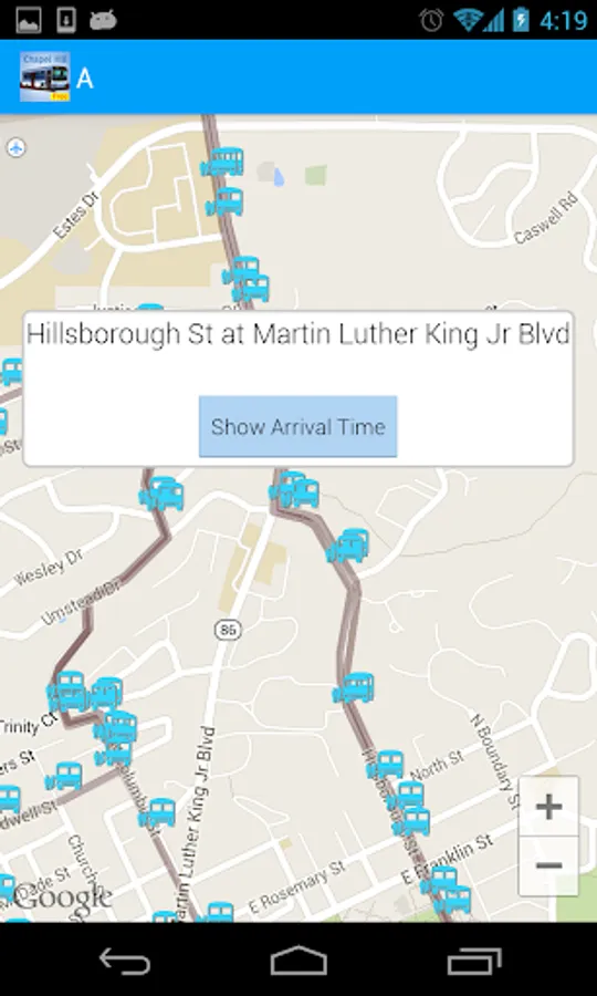 Get real time bus arrival times for CHT Chapel Hill Transit.