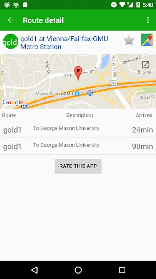 Get real-time bus times and schedules for City of Fairfax transit CUE