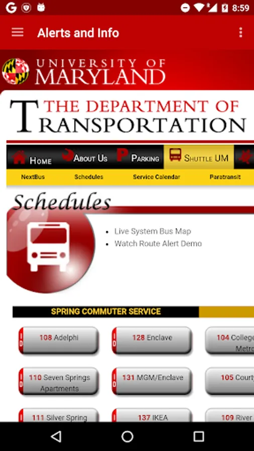 Get real time bus arrival times and schedules for University of Maryland (UMD) Shuttle