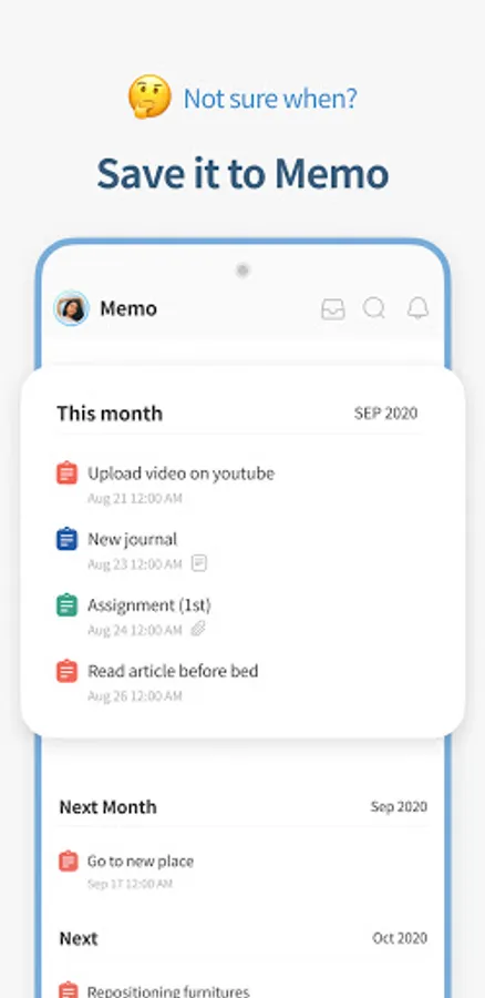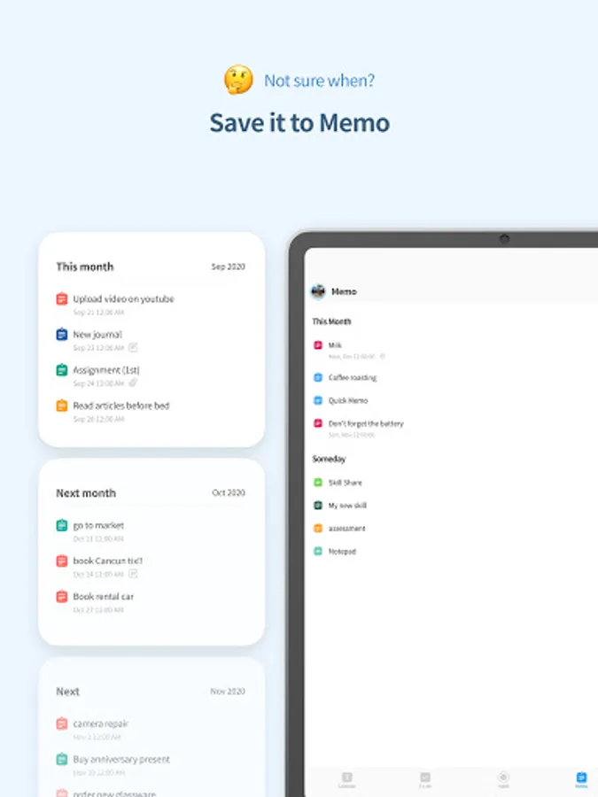 • If there are plans that you can’t fix the time right now, keep it in Memo and plan it later.