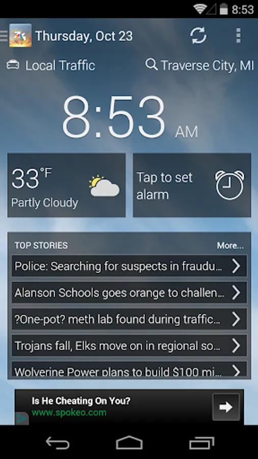 The 7 & 4 News Today app gives you all of the information you need to start your day. Wake up with the built in alarm clock function and then see up to the minute Traverse City, mI headlines and sports news, get the latest Traverse City, mI weather conditions and traffic information, know if Traverse City, mI area schools are closed, and watch our live streaming newscast.
