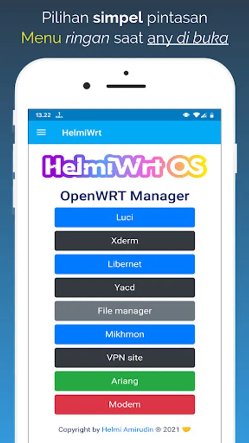 Helmiwrt openwrt manager is an openwrt manager application to make it easier for you to configure your openwrt router.