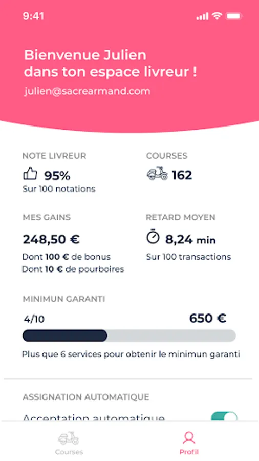 The Sacré Armand Pro application is exclusively dedicated to couriers and restaurants that are members of the platform.