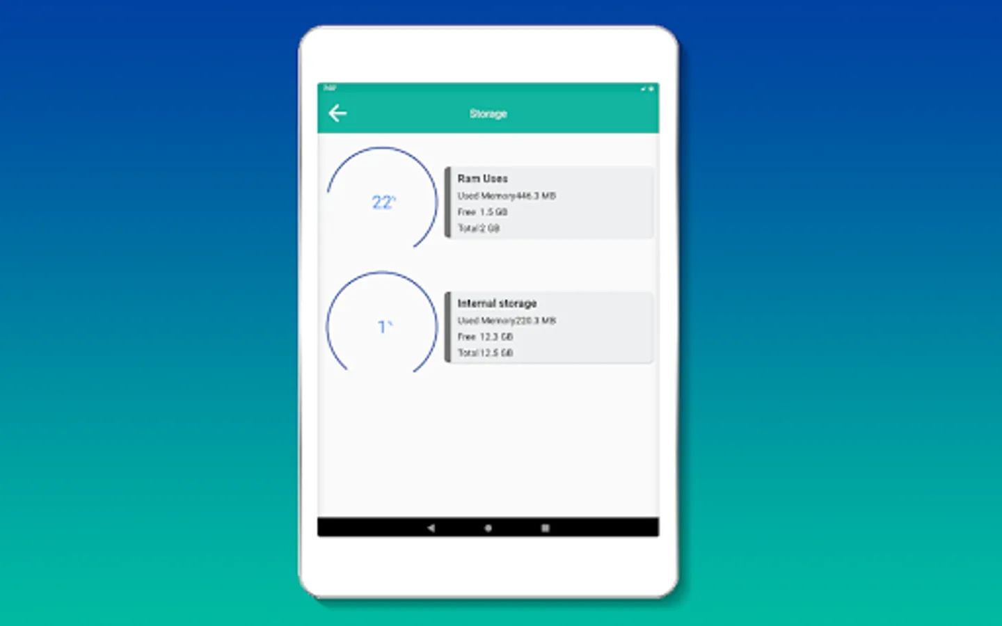 * Storage info internal, external and RAM